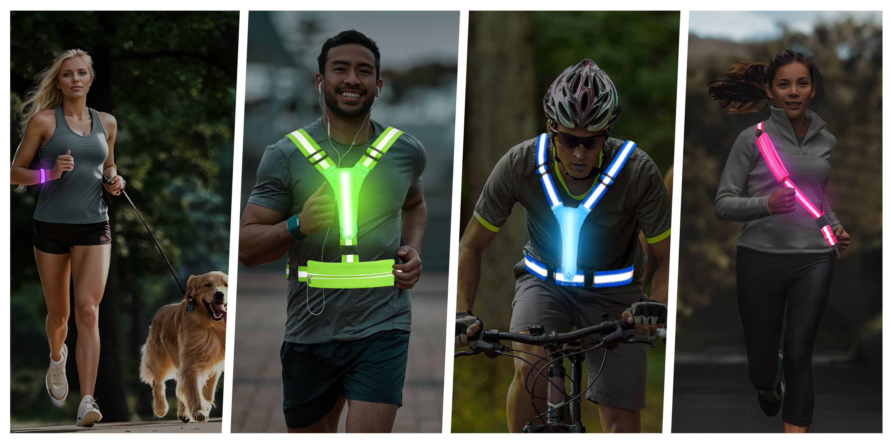LED Reflective Running Vest, 5 Colors Light Up Running Vest Rechargeable Running Lights for Runners High Visibility Reflective Running Gear, Adjustable for Men and Women