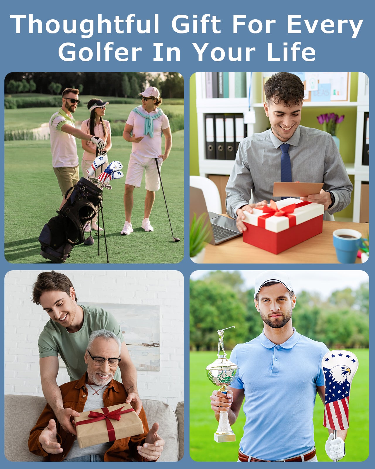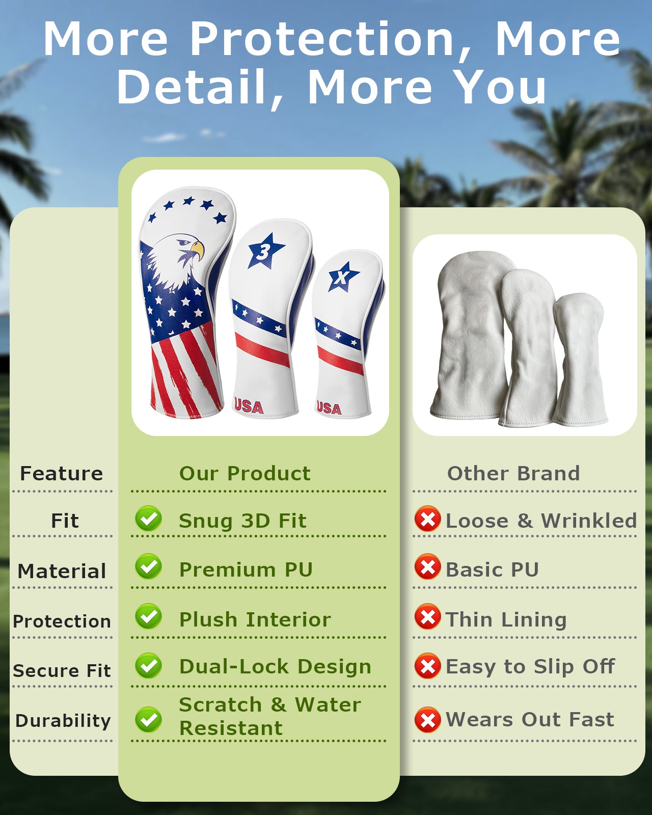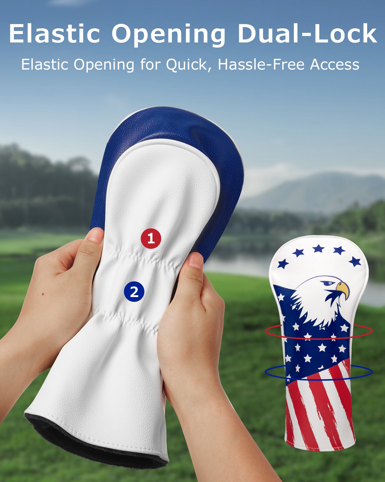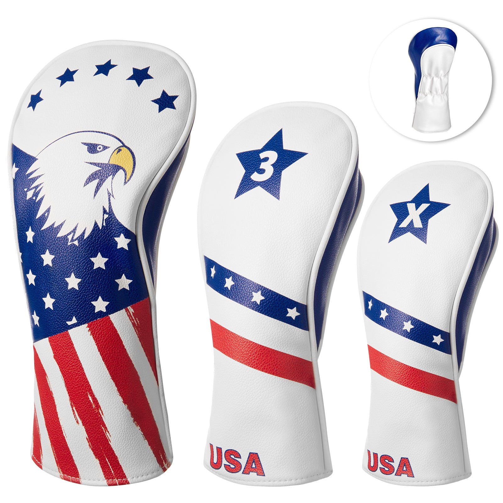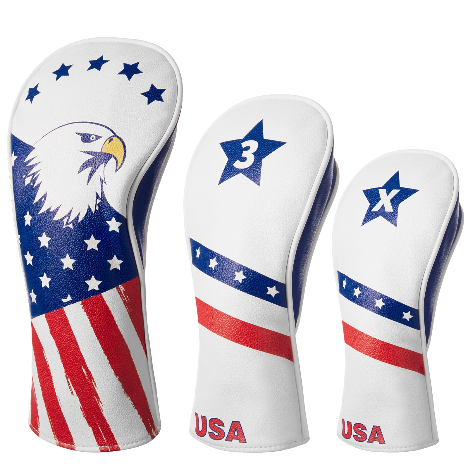 Fitense Golf Head Covers, 3 Pack Golf Club Head Covers USA Stars and Stripes, Velour Lined for Extra Club Protection, Designed to Fit All Woods and Drivers Velour Lined (1,3,X)